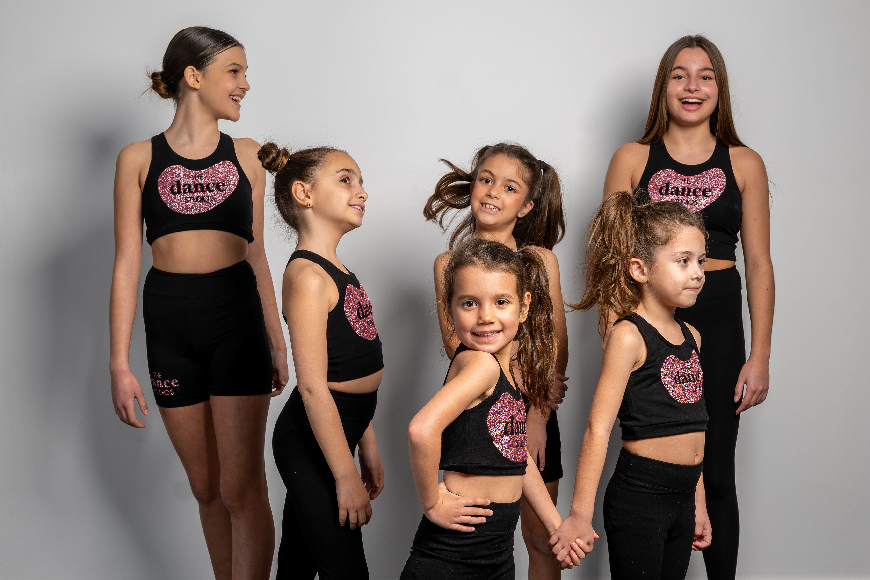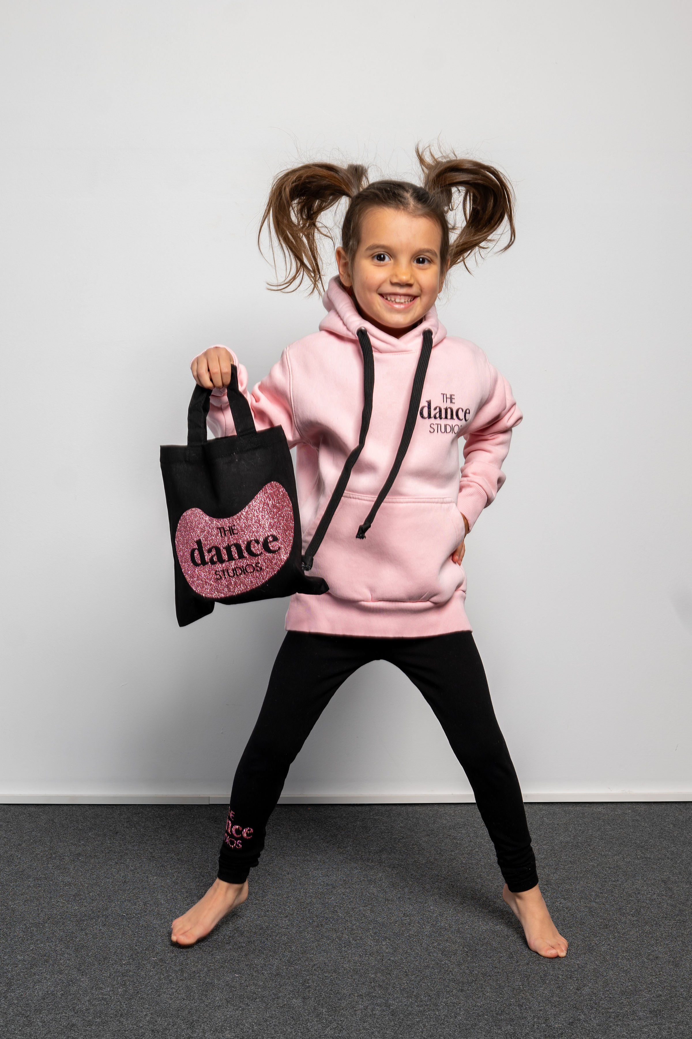 Σετ μπουστάκι και κολάν supplex σε μαύρο χρώμα με ροζ glitter λεπτομέρειες. Διατίθεται σε 4, 6, 8, 10, 12, 14, 16 και SMALL, MEDIUM, LARGE.