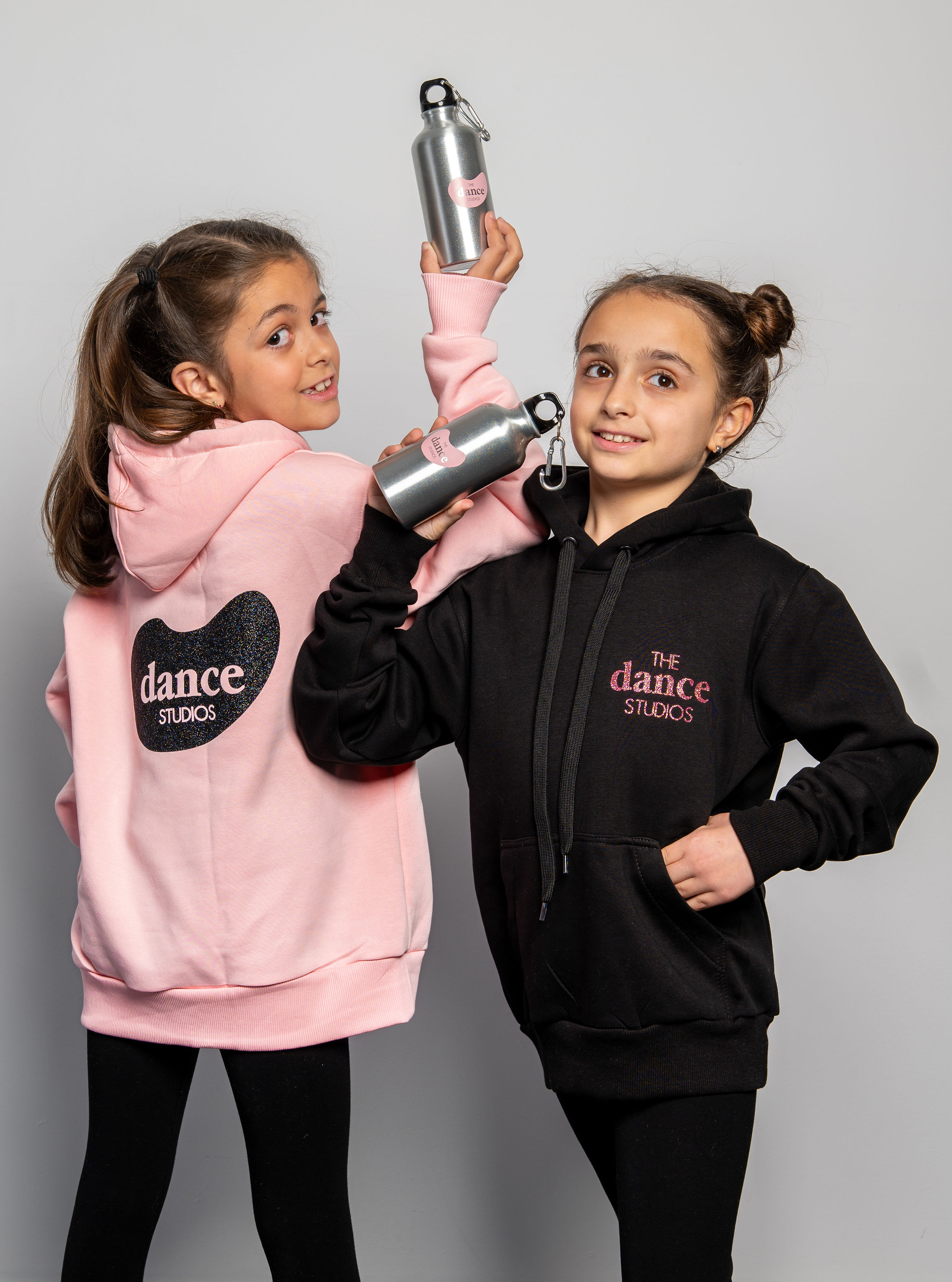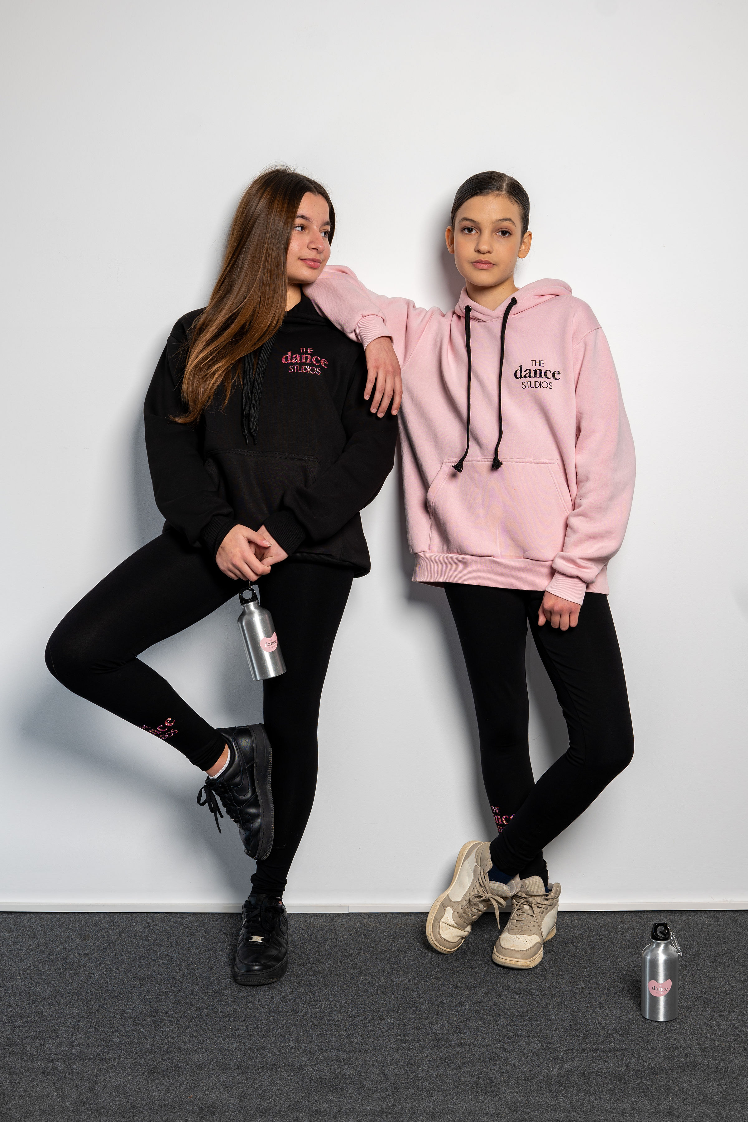 Φούτερ με κουκούλα, 100% βαμβακερό με φλις επένδυση, σε ροζ και μαύρο. Διατίθεται σε 4, 6, 8, 10, 12, 14, 16.