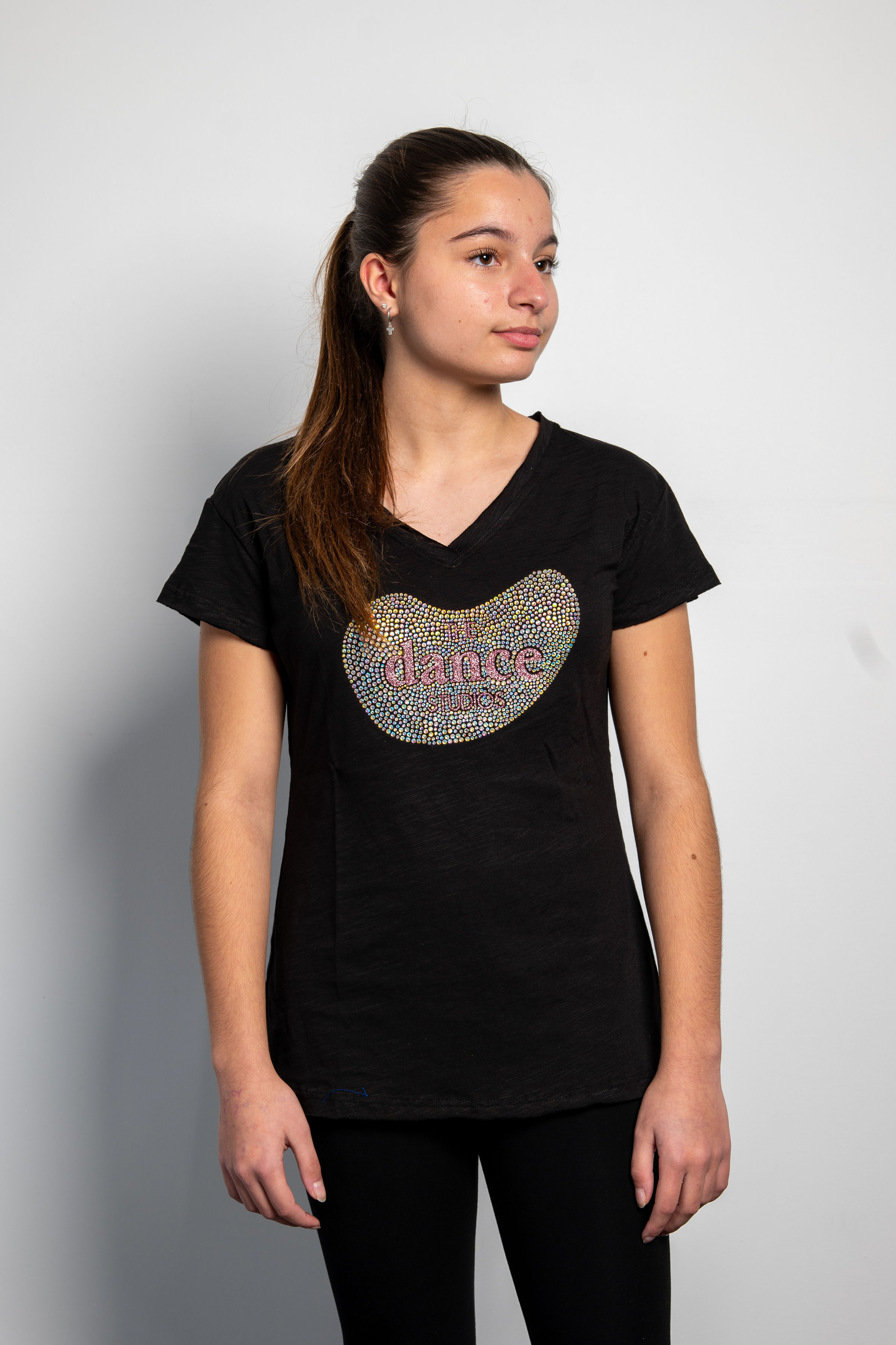 T-shirt βαμβακερό με λεπτομέρειες στρας σε μαύρο χρώμα. Διατίθεται σε 4, 6, 8, 10, 12, 14, 16 και SMALL, MEDIUM, LARGE.