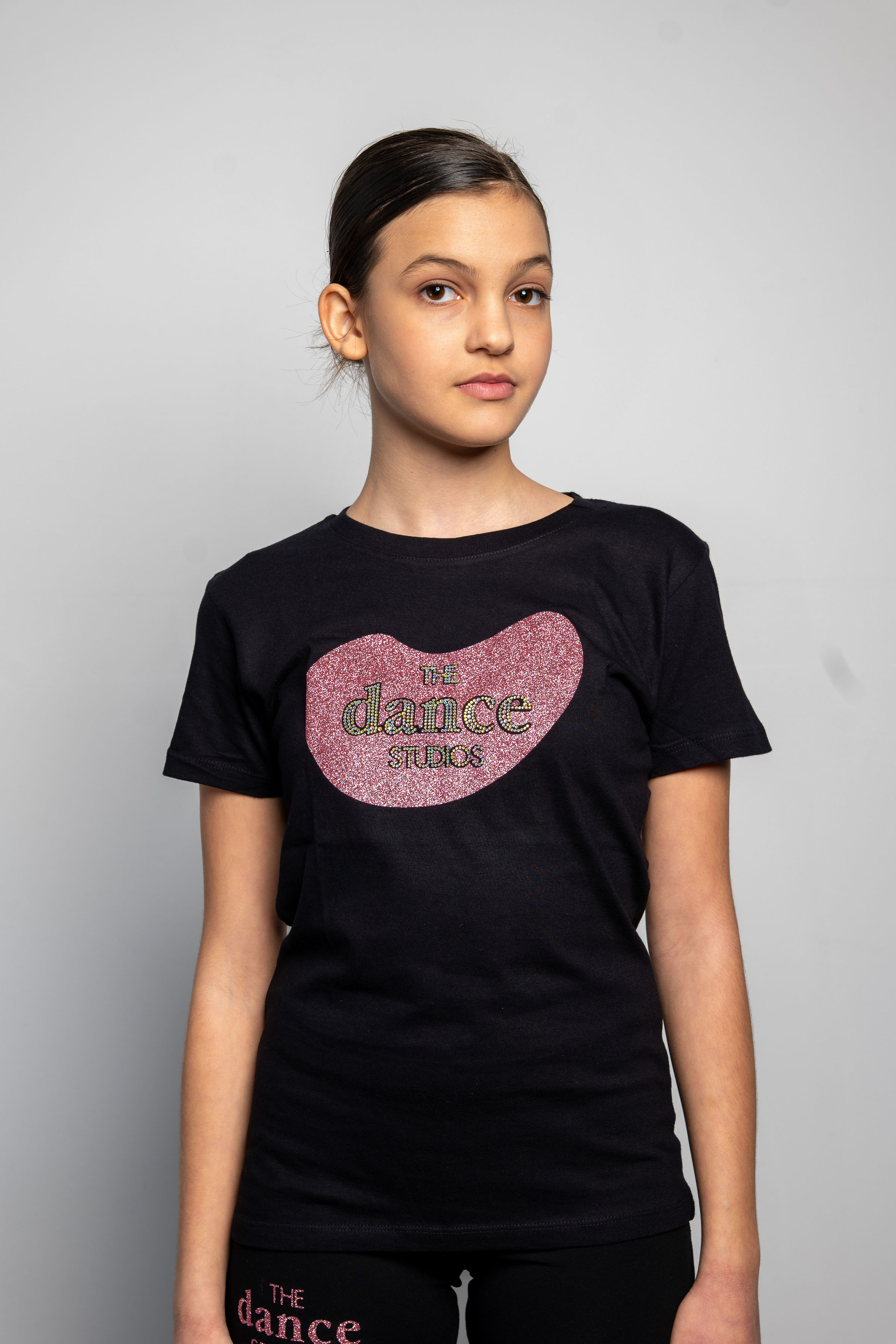 T-shirt βαμβακερό με ροζ glitter λεπτομέρειες σε μαύρο χρώμα. Διατίθεται σε 4, 6, 8, 10, 12, 14, 16 και SMALL, MEDIUM, LARGE.